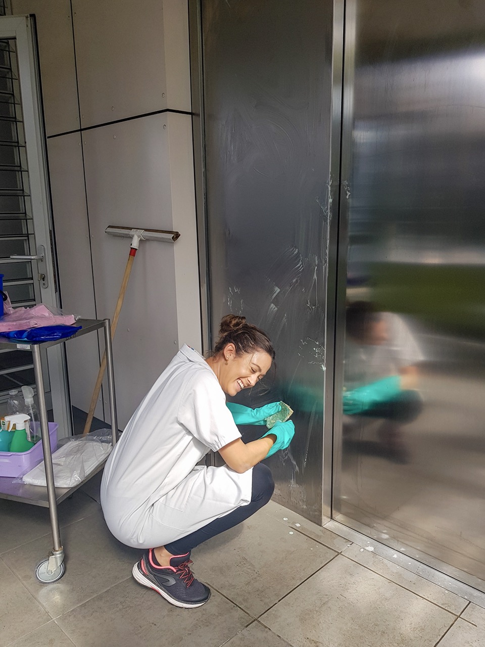 -des agents nettoient l’unité de dialyse à domicile (UDD) de DSM.